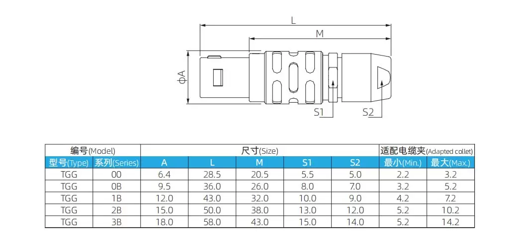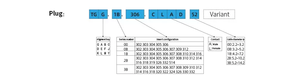 Sleutel (G) of sleutels (A…M en R) – Snel-push-pull-zelfvergrendelend systeem; – Waterdichte aansluiting (IP50); – Meerpolige typen 2~32 contacten; – Meerdere sleutelopties om kruiskoppeling van vergelijkbare connectoren te voorkomen;