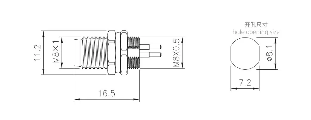 | M8 Mannelijke Voormontage Socket-3A Pin | M8x0,5 | PCB | 3A | M8-P3A-GPB M8 | ||