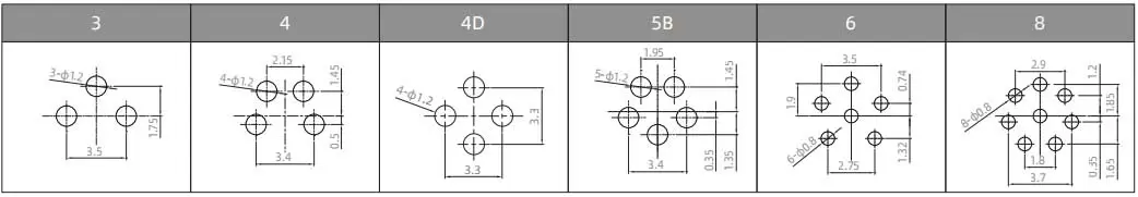 | M8 Mannelijke Voormontage Socket-4A Pin | M8x0,5 | PCB | 4A | M8-P4A-GPB M8 | ||