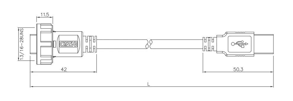 | USB mannelijk/mannelijk omspoten met kabel (met schroefdraad)-xxM | USB 3.0 | PU | JA | E13T-MU3-MWA/NWA-xxPU-S | ||